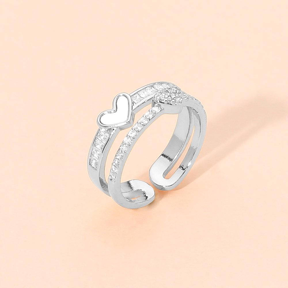 • Stylish adjustable ring designed with a layered double band silhouette and a delicate heart accent. Sparkling stone details add refined shine, making this ring ideal for gifting, stacking, or everyday statement wear in boutique jewelry and fashion accessory collections.