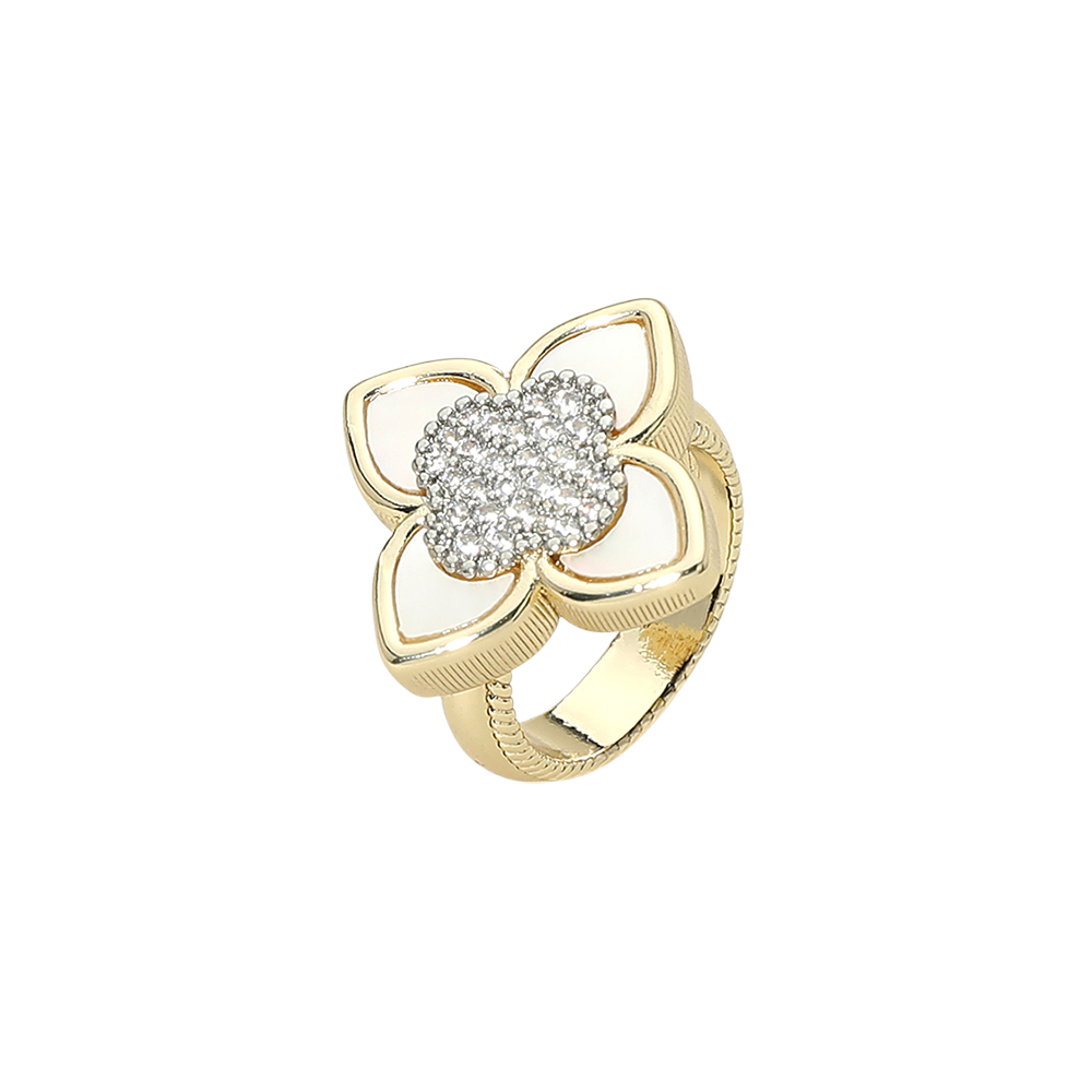 Details • Size : 1" H • This floral accent adjustable ring features a bold, elegant design with a dimensional flower centerpiece that adds instant charm to any look. Designed for comfortable wear and easy styling, it’s perfect for everyday outfits, special occasions, gifting, or boutique jewelry collections. A standout piece that blends classic inspiration with modern appeal. • CZ Cubic Zirconia • Gold Dipped