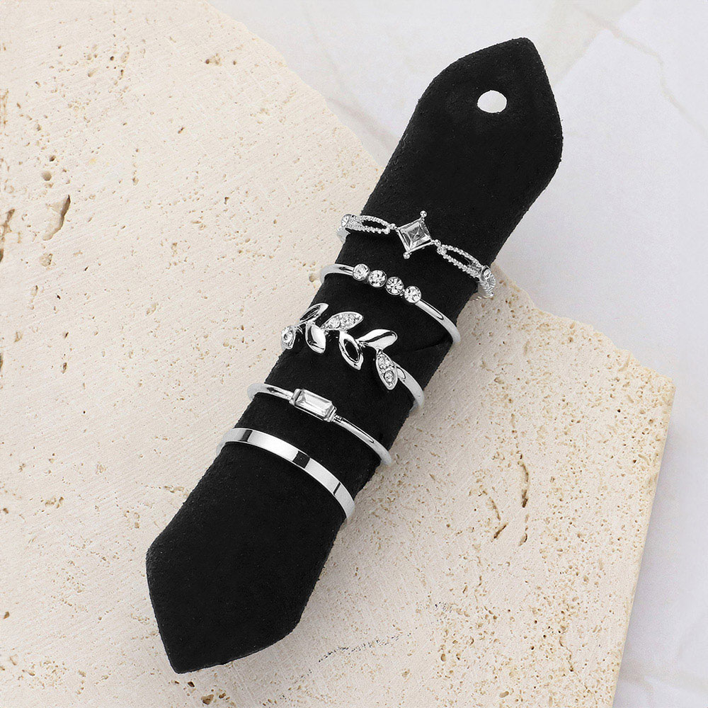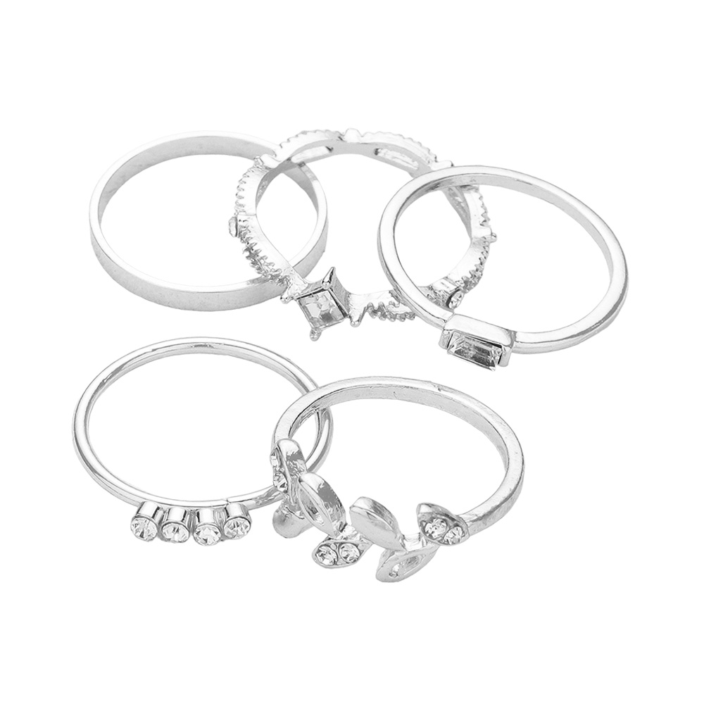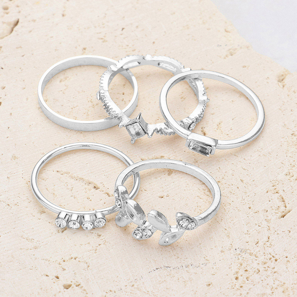 5PCS - Leaf Baguette Stone Mixed Stackable Rings