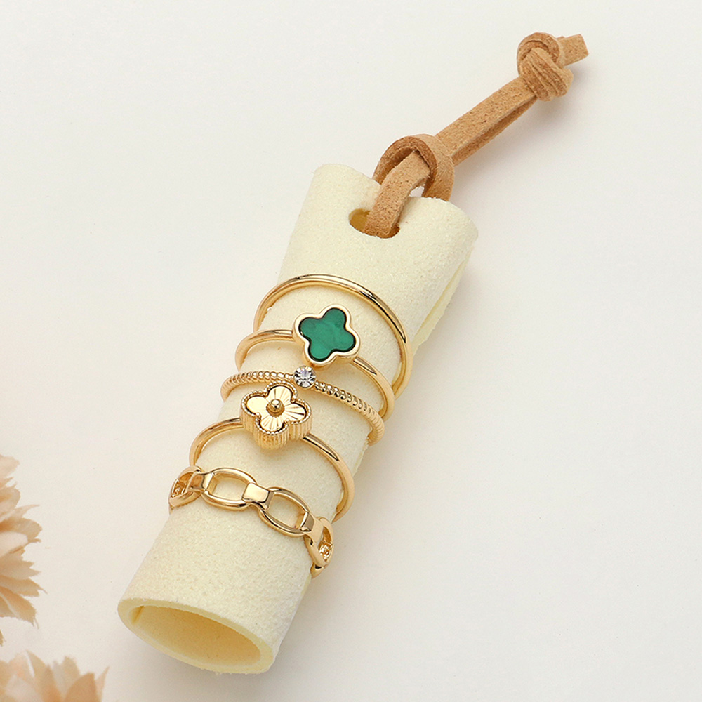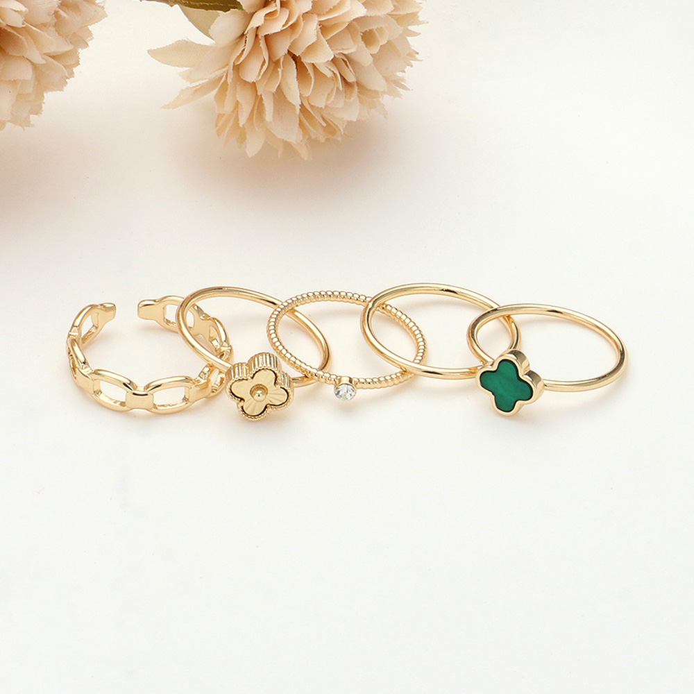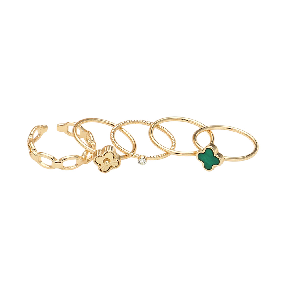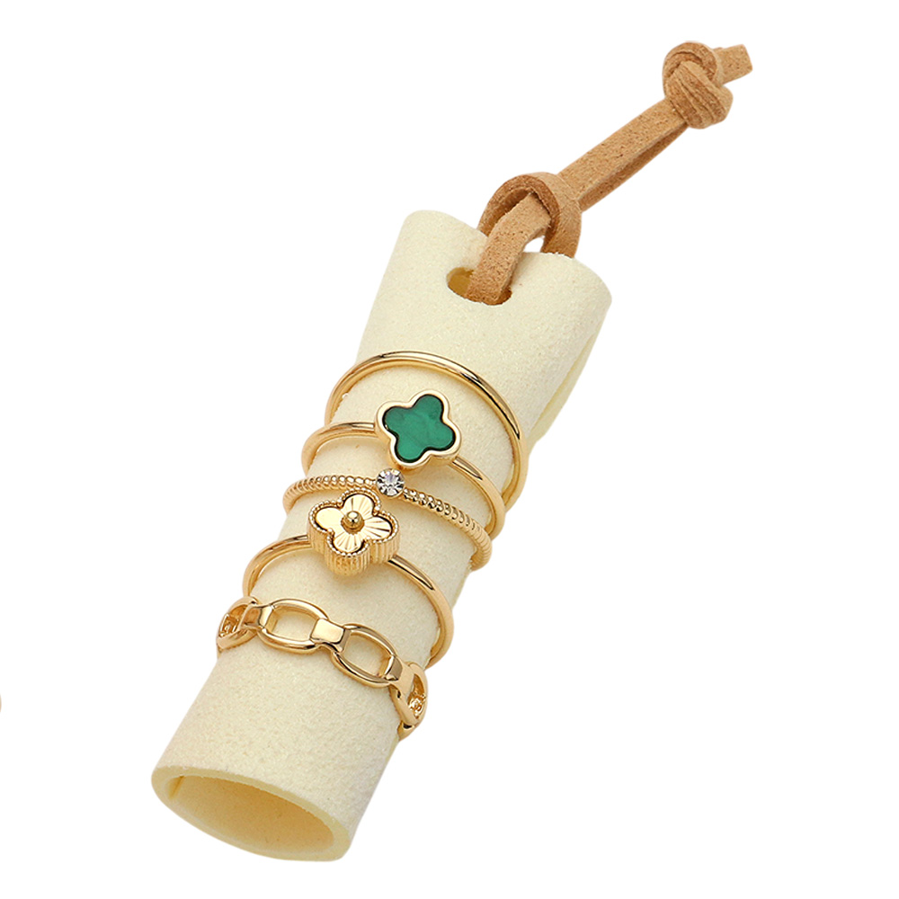 14K Gold Plated Two Tone CZ Stone Square Ring Mother of Pearl Quatrefoil Charm Pendant Chunky Textured Oval Link Necklace