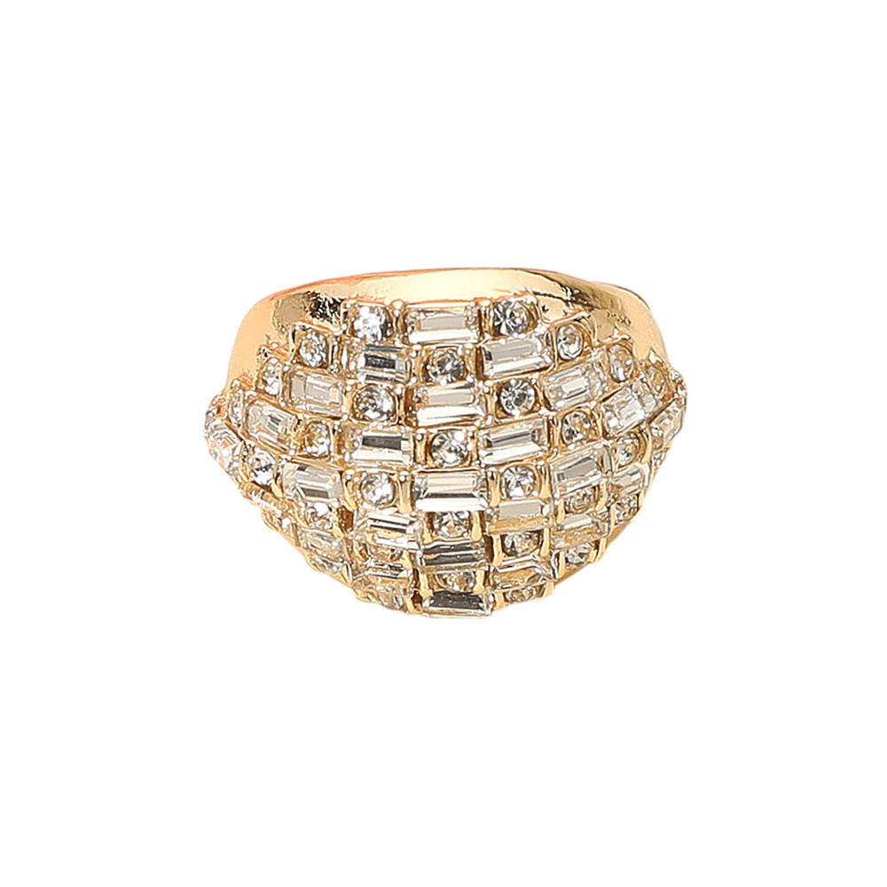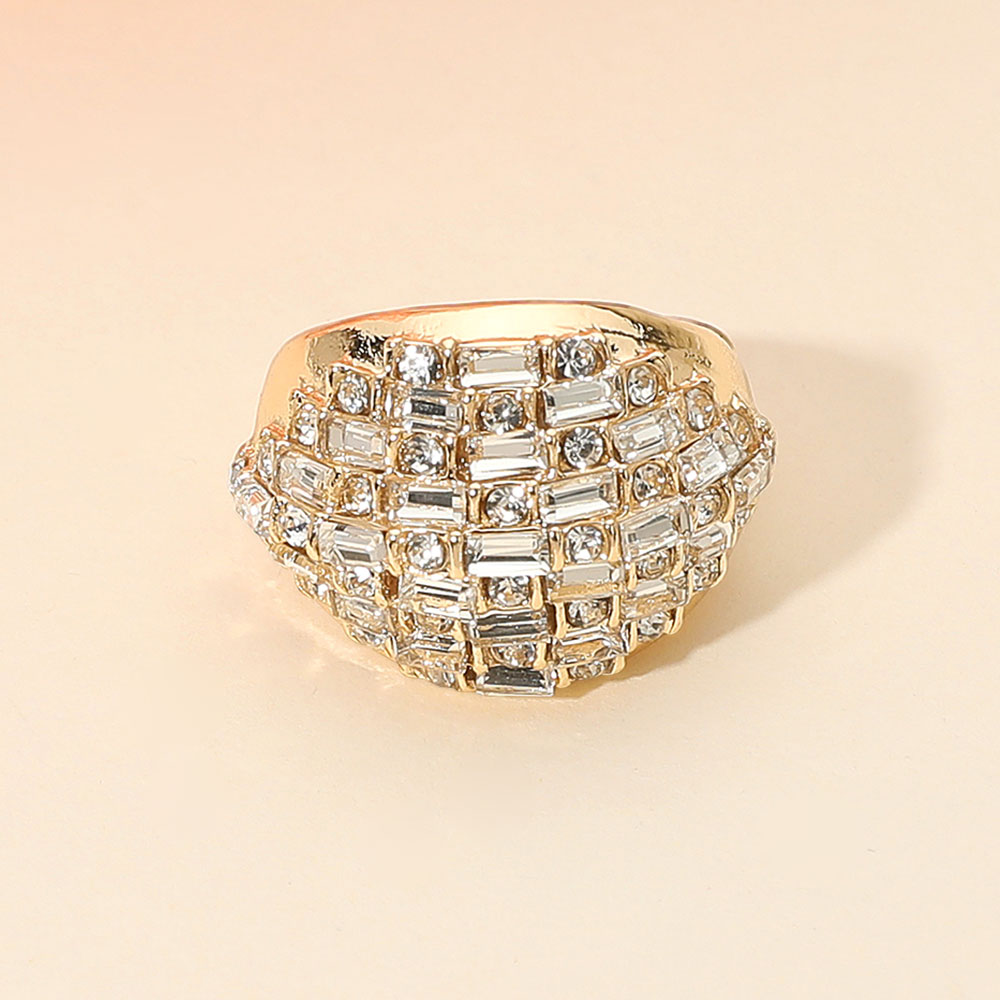 Checkered Pattern Baguette Stone Embellished Chunky Stretch Ring
