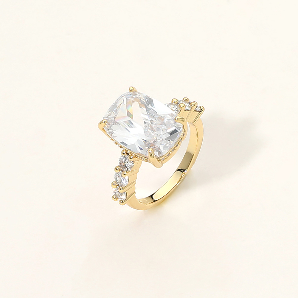 Details • Size : 0.6" H • This statement ring showcases a bold cushion cut CZ centerpiece with refined side accents that add depth and brilliance. Designed for standout style, it elevates everyday looks and special occasion outfits alike. The elegant silhouette makes it perfect worn alone as a focal piece or layered with minimal bands for a polished, fashion-forward finish. • CZ Cubic Zirconia • Lead and Nickel Compliant