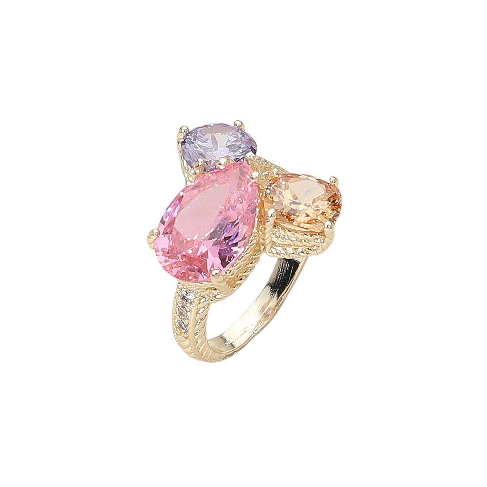 Details • Size : 0.8" H • Bold three-stone ring featuring a striking cz teardrop centerpiece paired with complementary accent stones. Its eye-catching design and refined detailing create a sophisticated statement accessory perfect for special occasions or elevating everyday style. • CZ Cubic Zirconia