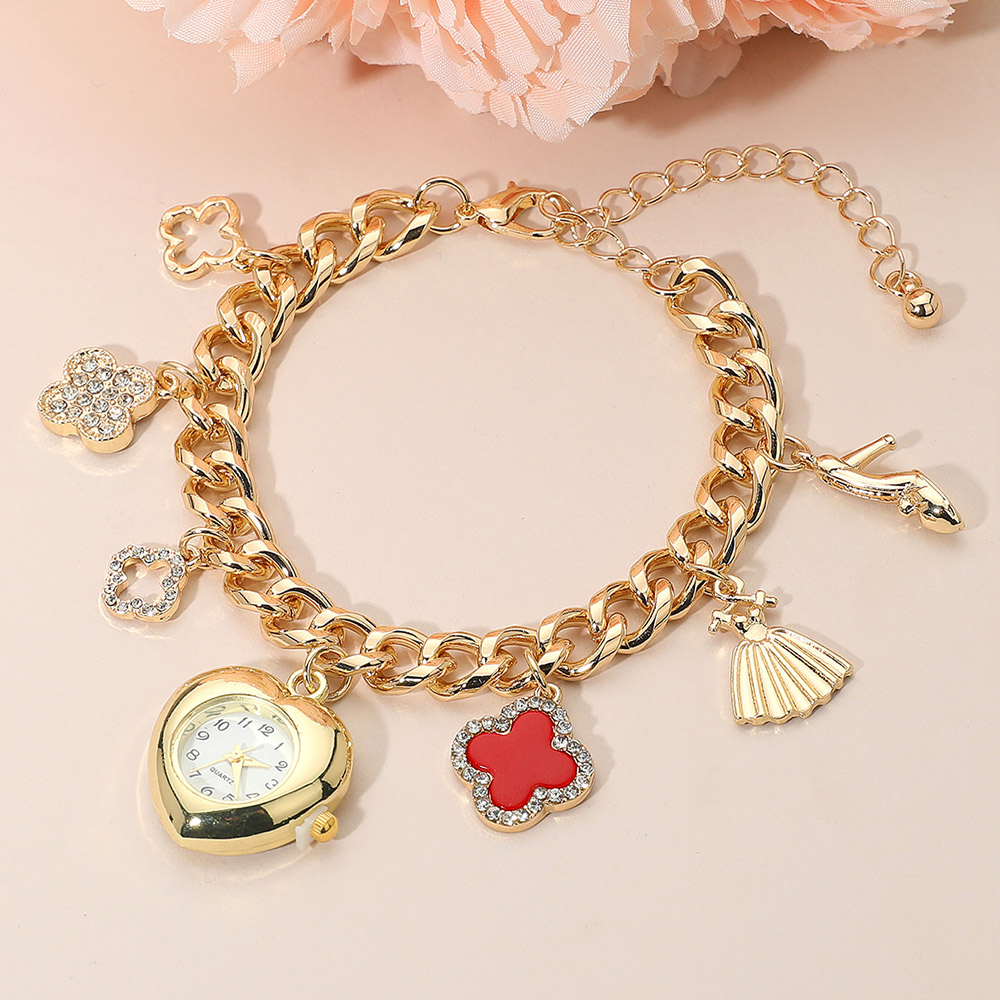 Silver Dipped Quatrefoil High Heel Dress Charm Heart Watch Bracelet