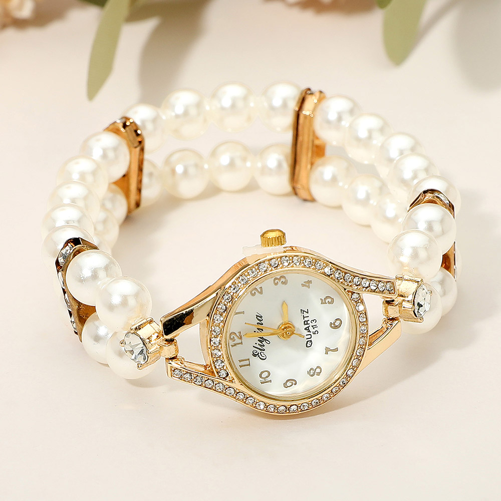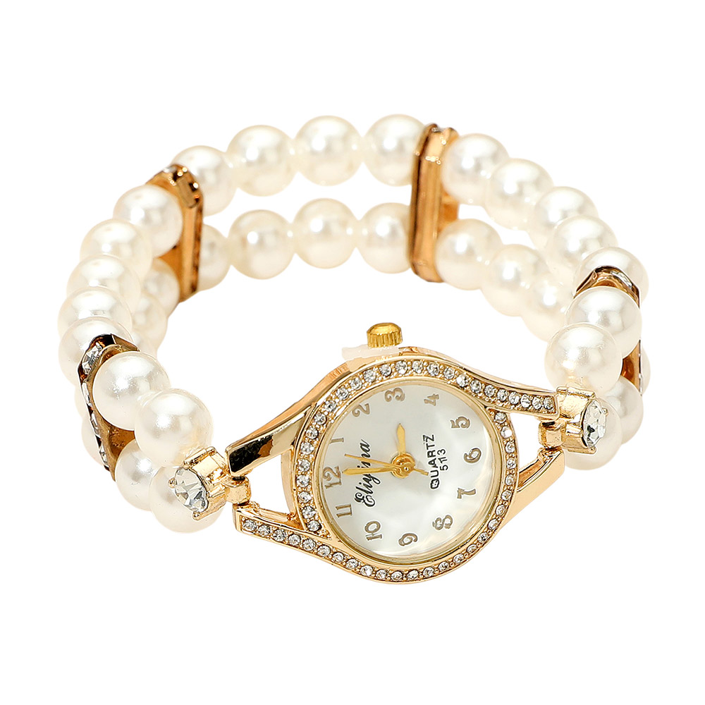 Details • Size : 0.9" H • Stretchable • Add timeless elegance to your look with this pearl strap quartz watch, highlighted by a crystal-accented bezel. Designed with a bracelet-style band, it offers a graceful blend of luxury and functionality, making it ideal for formal occasions or daily wear. • Stainless Steel