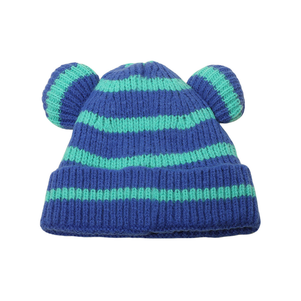 Kids Cute Bear Ear Striped Knit Winter Beanie Hat