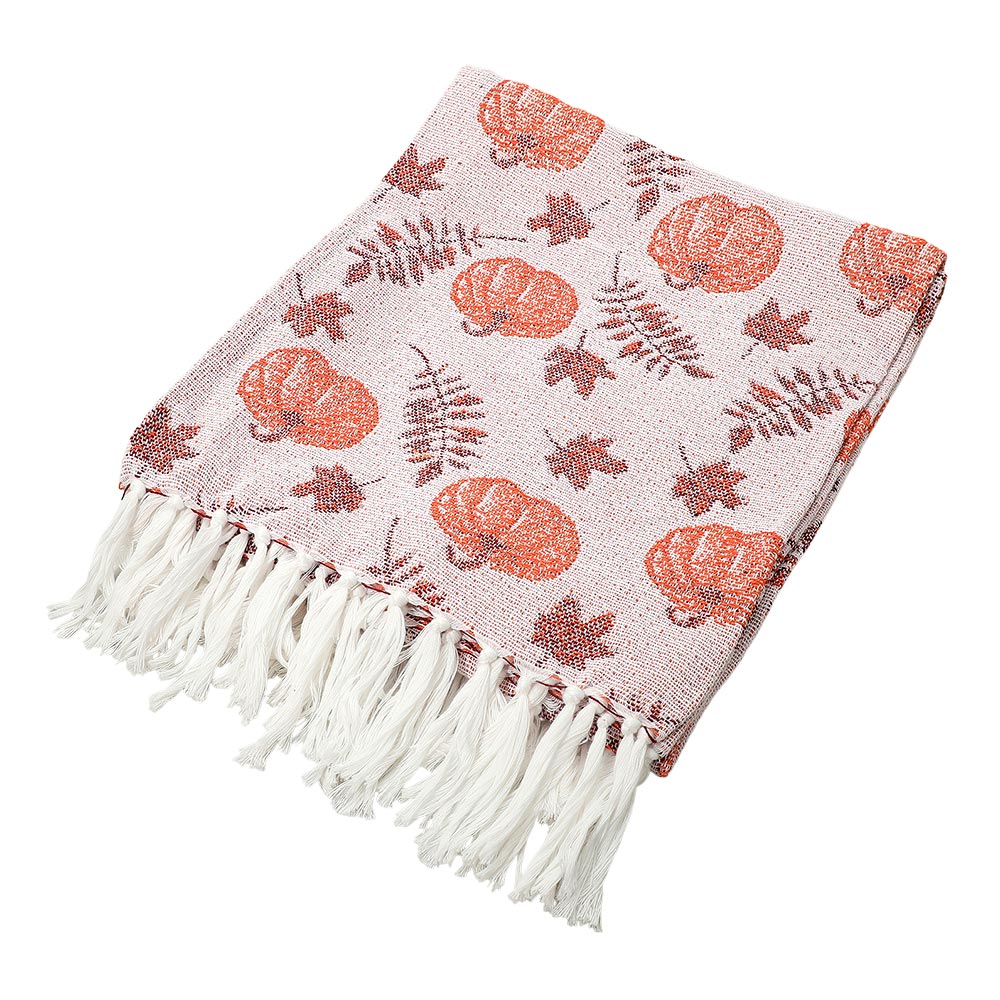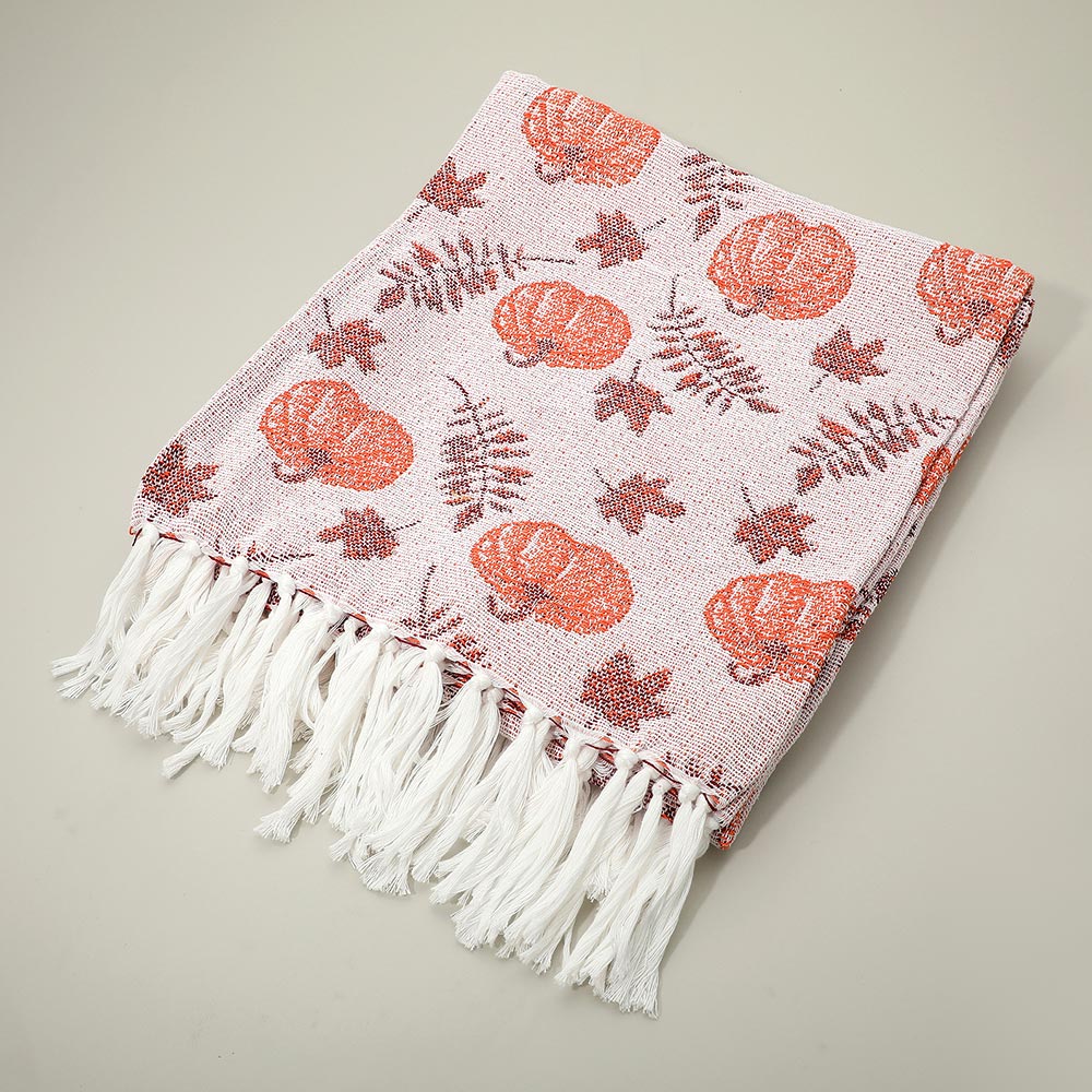 Pumpkin Leaf Pattern Harvest Collection Fringe Woven Throw Blanket