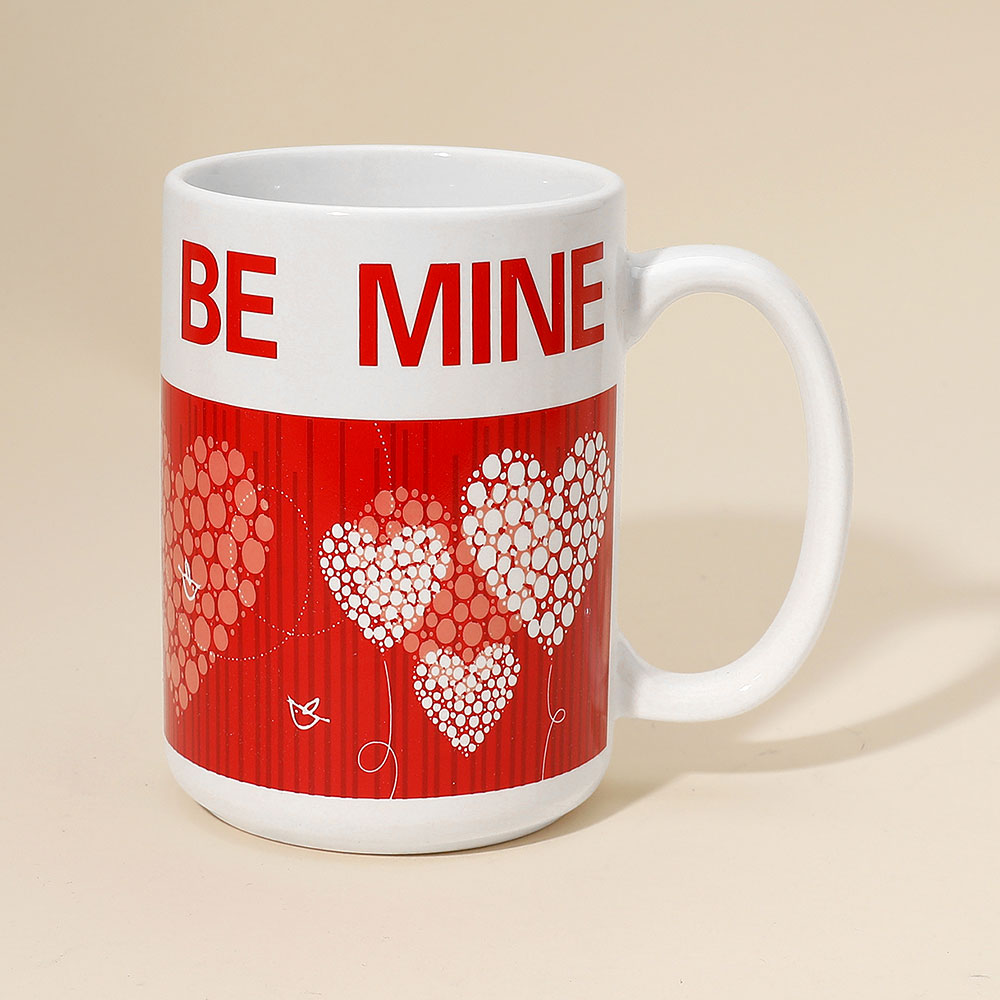 • Charming Valentine-themed coffee mug featuring a bold “Be Mine” message and heart balloon design. Perfect for gifting, daily use, or seasonal dĂ©cor. A great way to add a touch of love to morning routines, office desks, or special occasions. Ideal for Valentine’s Day gifting.
