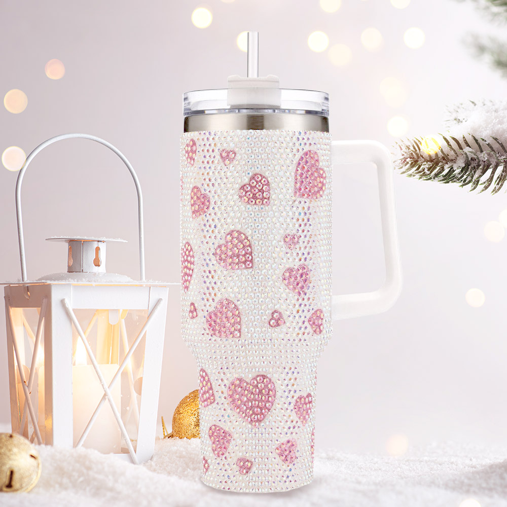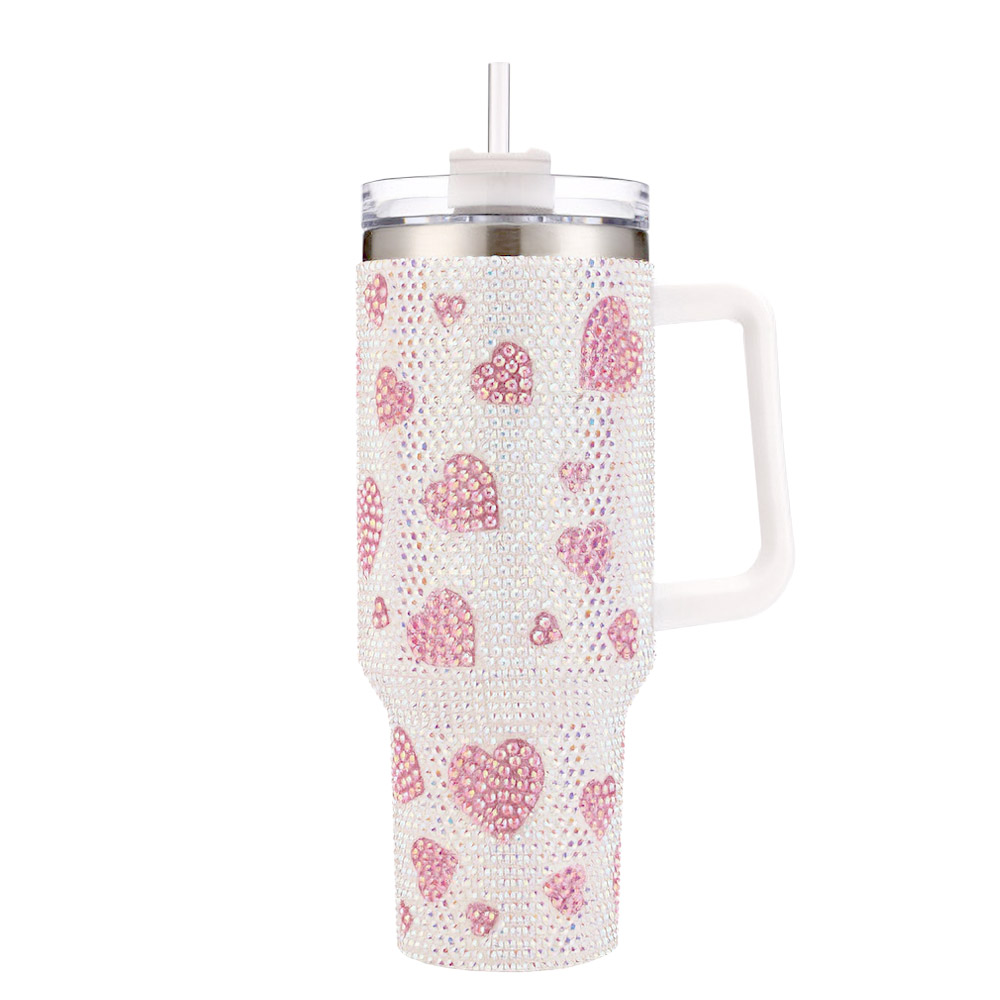 Bling Studded Heart Patterned 40oz Stainless Steel Tumbler