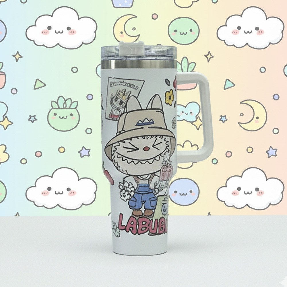 • Add fun to your daily routine with this monster bunny cartoon character travel tumbler. Featuring a playful design with cute graphics, a sturdy handle, and secure lid, this 40oz tumbler keeps drinks hot or cold. Perfect for collectors, fans of quirky style, or anyone who enjoys unique drinkware.