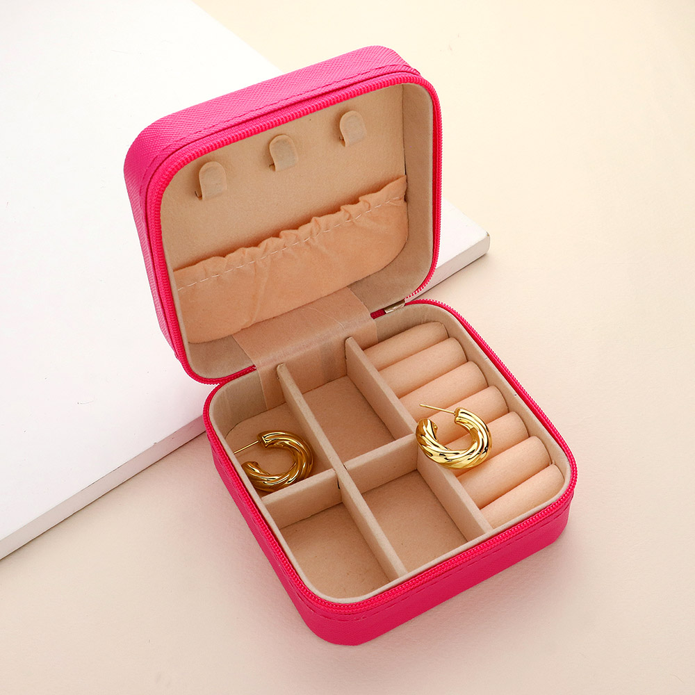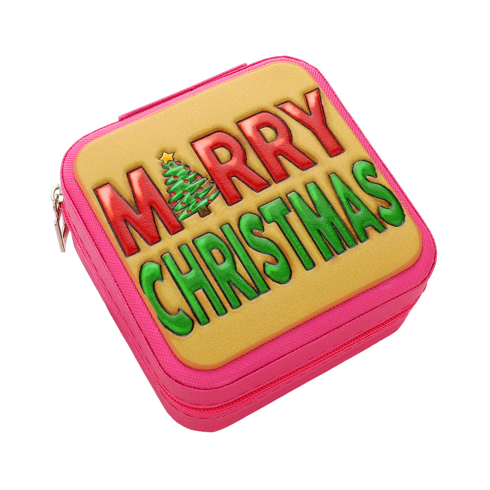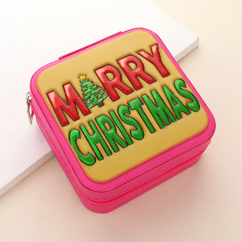 Faux Leather Embossed Merry Christmas Message Portable Square Jewelry Box