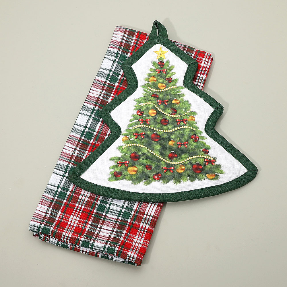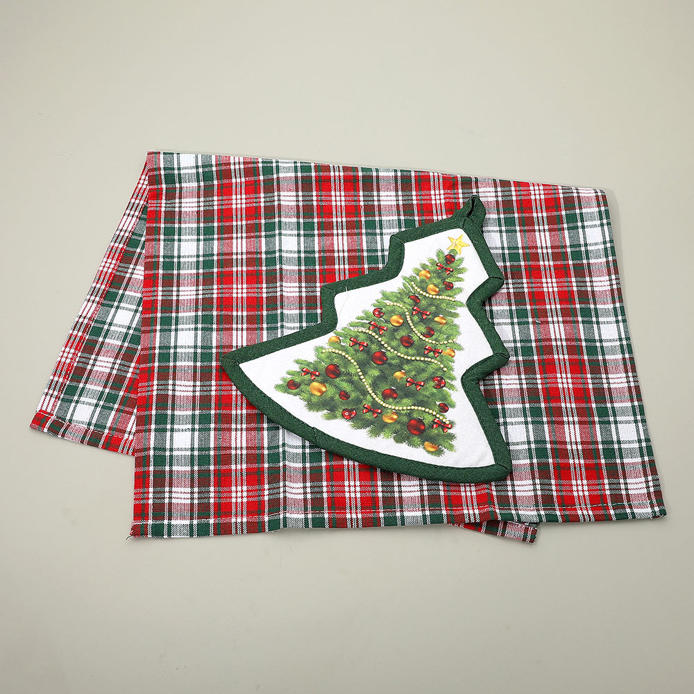 2PCS - Holiday Plaid Kitchen Towel Christmas Tree Pot Holder Set