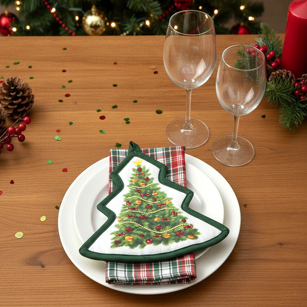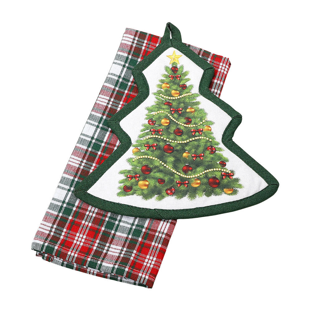 • Christmas Tree Kitchen Set – Festive 2-piece set includes a Christmas tree-shaped potholder and a plaid towel. Ideal for holiday cooking, baking, or gifting. Bring seasonal warmth and cheerful style to your kitchen dĂ©cor with this charming Christmas kitchen duo.