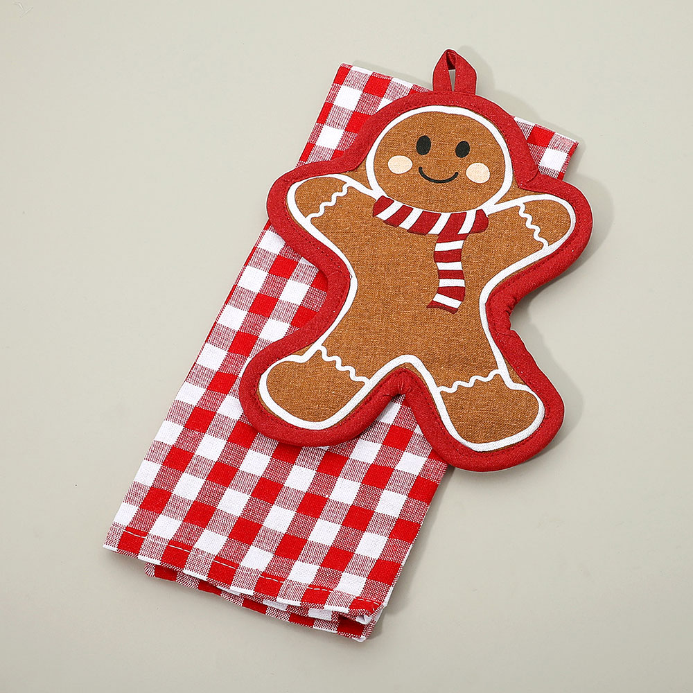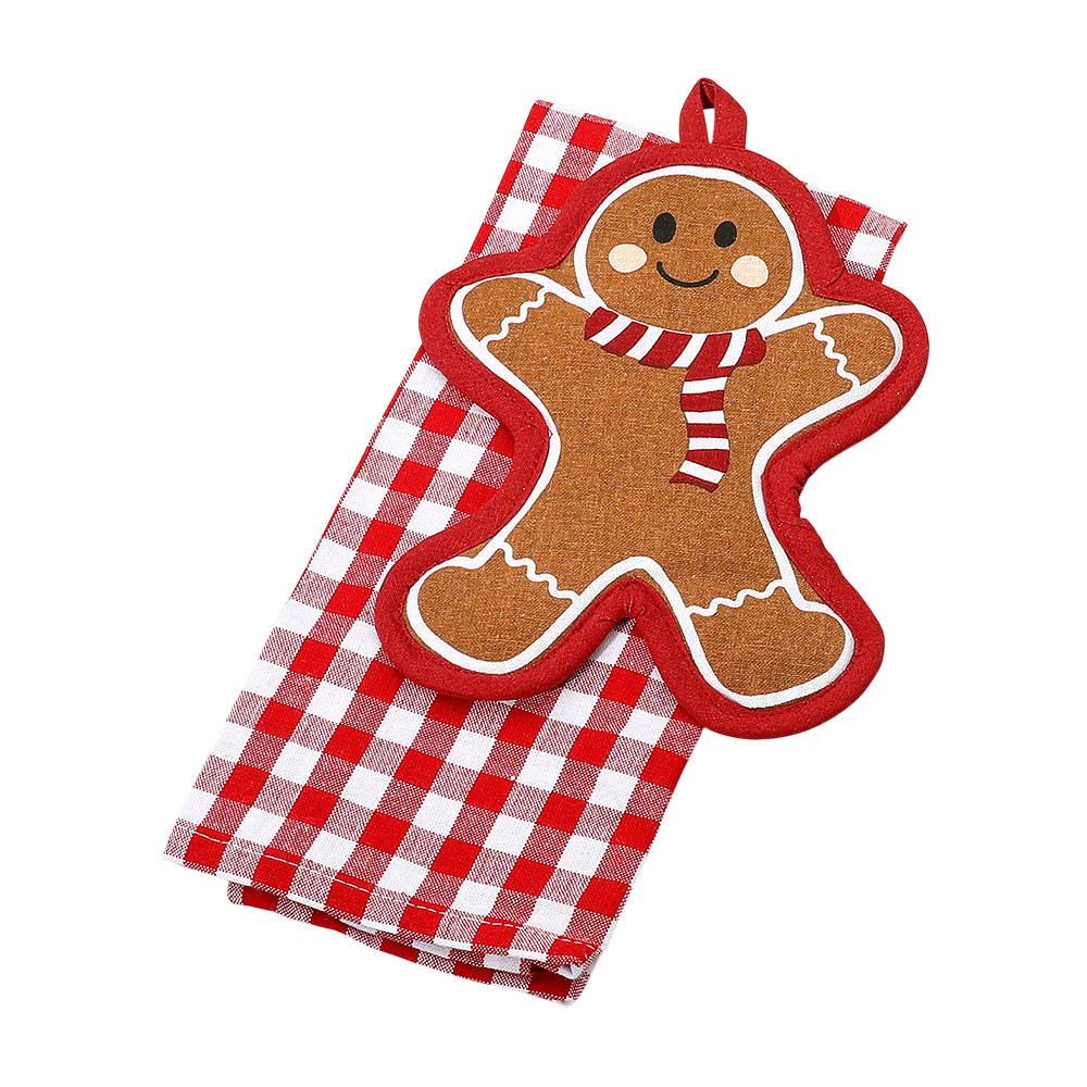 • Gingerbread Man Kitchen Set – Festive 2-piece kitchen set includes a gingerbread man potholder and a plaid towel. Perfect for cooking, baking, or gifting during the holidays. Add cheerful seasonal spirit and warmth to your kitchen dĂ©cor with this adorable Christmas set.