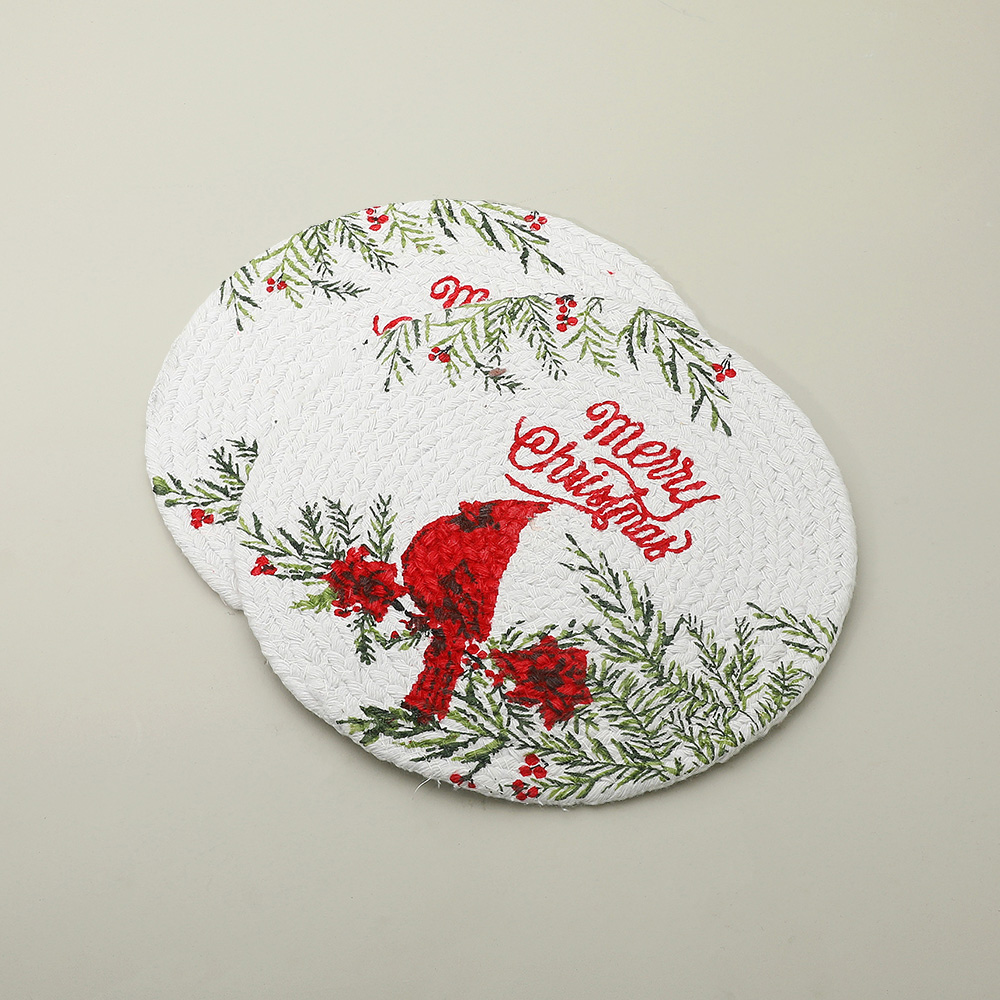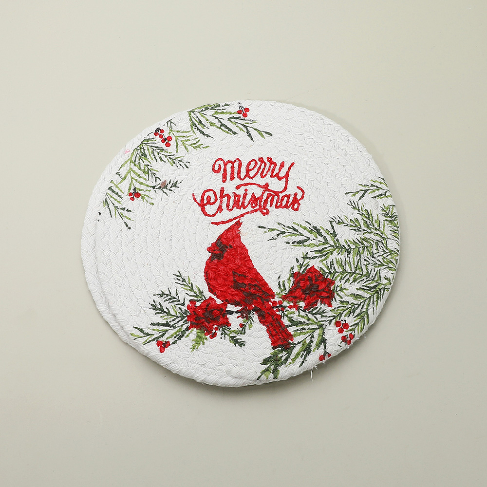 • Enhance your holiday table with these round placemats featuring a cardinal design and “Merry Christmas” message. Perfect for festive dining, entertaining, and seasonal dĂ©cor, this set of 2 combines practicality with classic holiday charm.