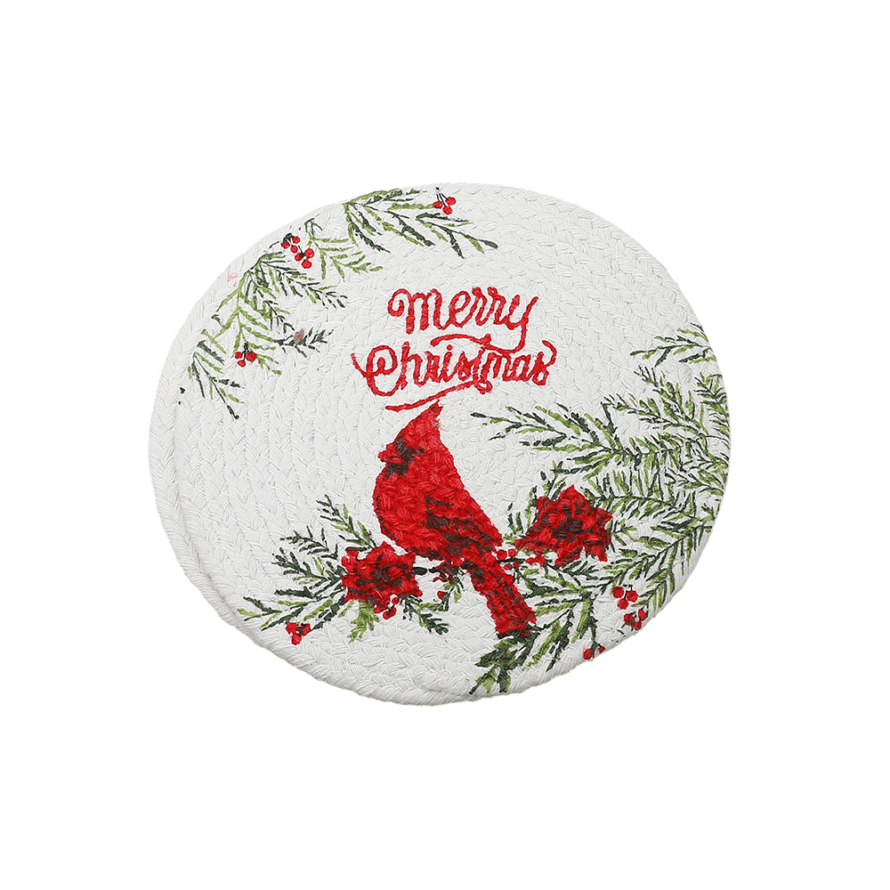 2PCS - Merry Christmas Message Cardinal Printed Round Trivet