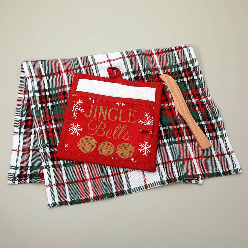 3PCS - Holiday Plaid Kitchen Towel JINGLE BELL Message Potholder Wooden Spreader Set 3PCS - Holiday Plaid Kitchen Towel JINGLE BELL Message Potholder Wooden Spreader Set 3PCS - Holiday Plaid Kitchen Towel JINGLE BELL Message Potholder Wooden Spreader Set 3PCS - Holiday Plaid Kitchen Towel JINGLE BELL Message Potholder Wooden Spreader Set