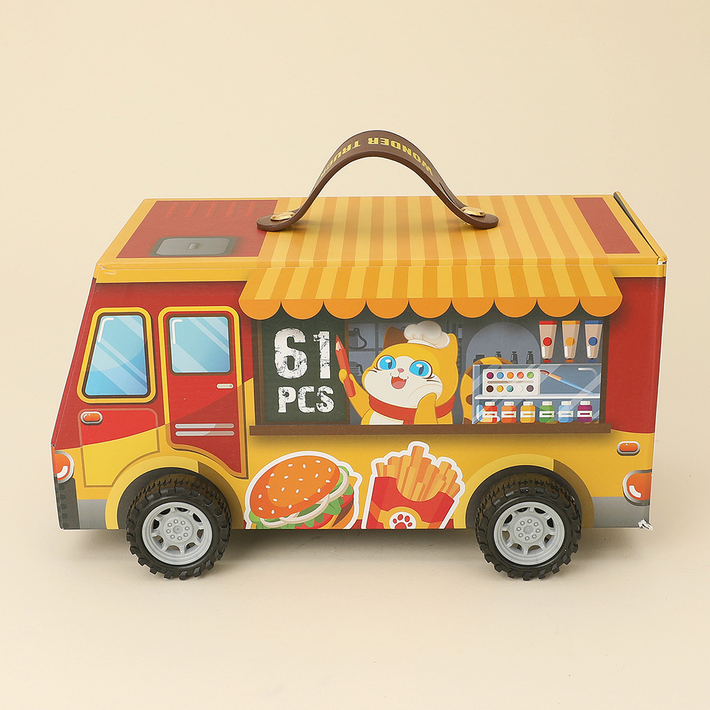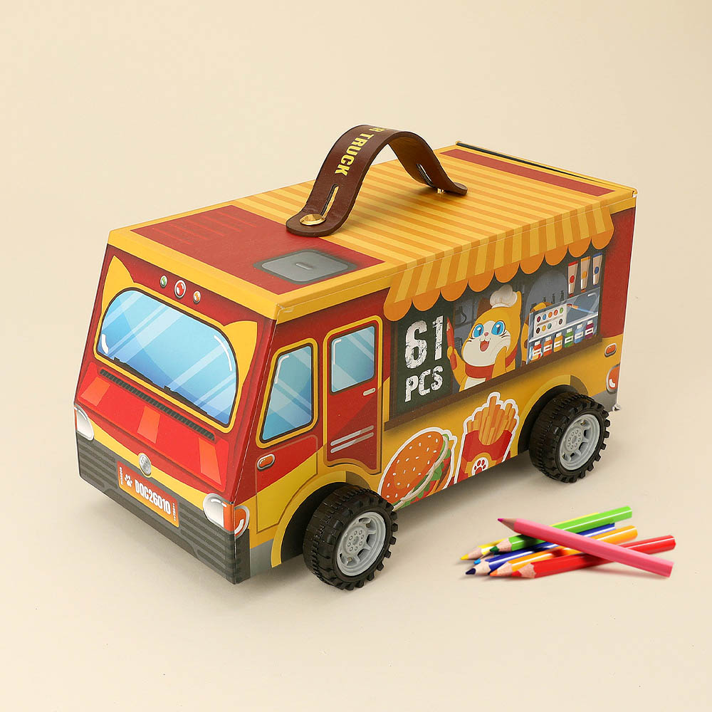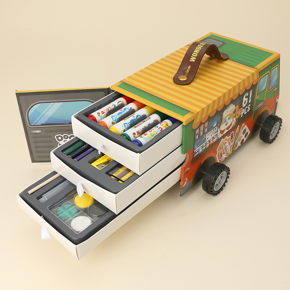 • Exciting 61-piece art truck set featuring markers, pencils, watercolors, stickers, and more in a fun rolling truck case. Complete with drawers for easy storage, this portable art kit encourages creativity and imagination, making it a perfect gift for young artists and craft enthusiasts.
