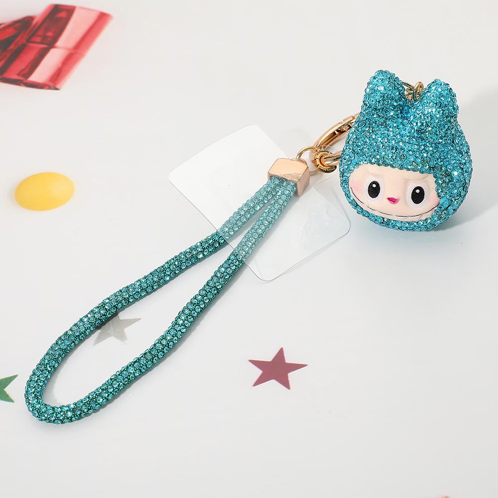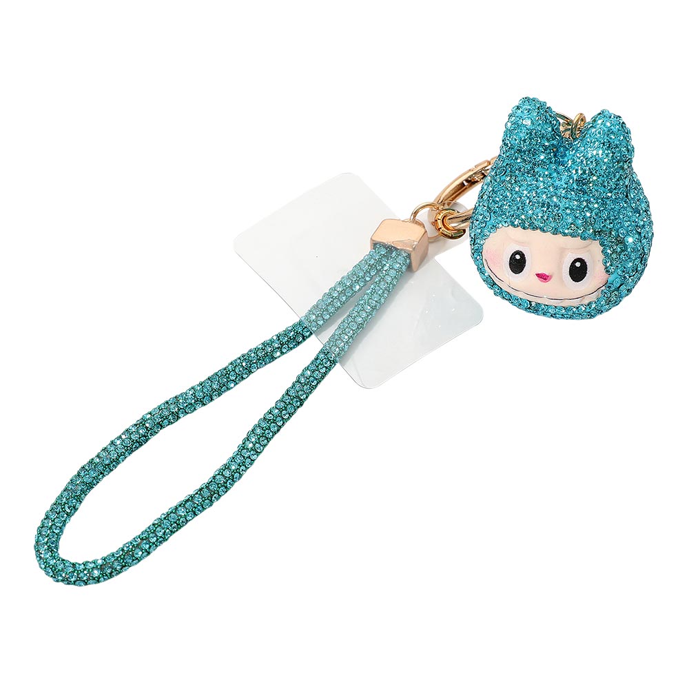 Bling Studded Monster Bunny Wristlet Keychain Bag Charm Phone Holder