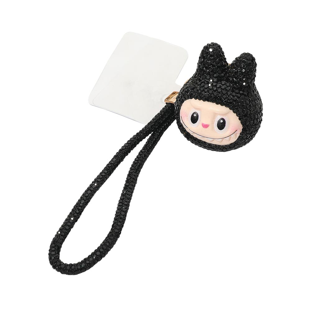 Details • Size : 1.6" X 2.2", 7" L • Adorable monster bunny character phone holder keychain featuring a sparkling figure charm with a matching wrist strap. Perfect for decorating bags, keys, or phones while keeping essentials easy to carry. Fun, lightweight, and ideal as a small gift or personal accessory for everyday use. • Lead and Nickel Compliant
