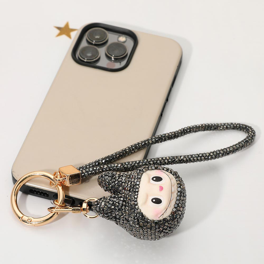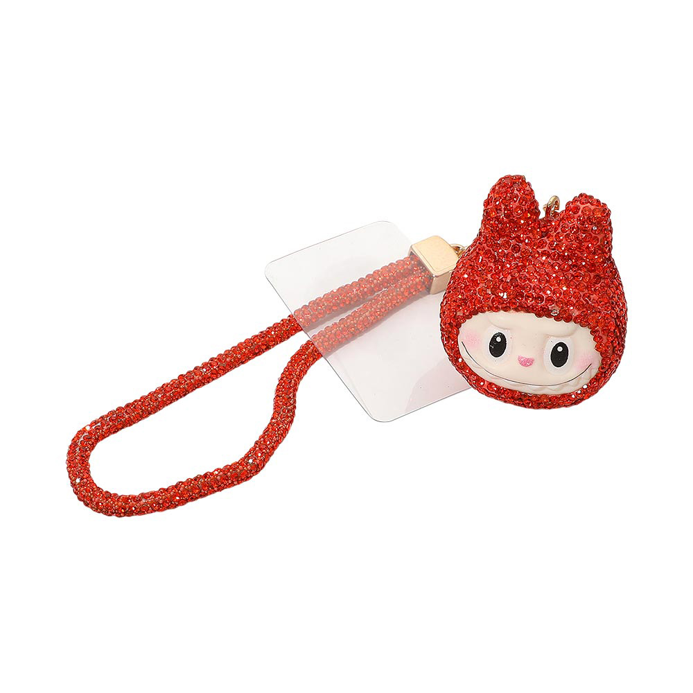 Details • Size : 1.6" X 2.2", 7" L • Adorable monster bunny character phone holder keychain featuring a sparkling figure charm with a matching wrist strap. Perfect for decorating bags, keys, or phones while keeping essentials easy to carry. Fun, lightweight, and ideal as a small gift or personal accessory for everyday use. • Lead and Nickel Compliant