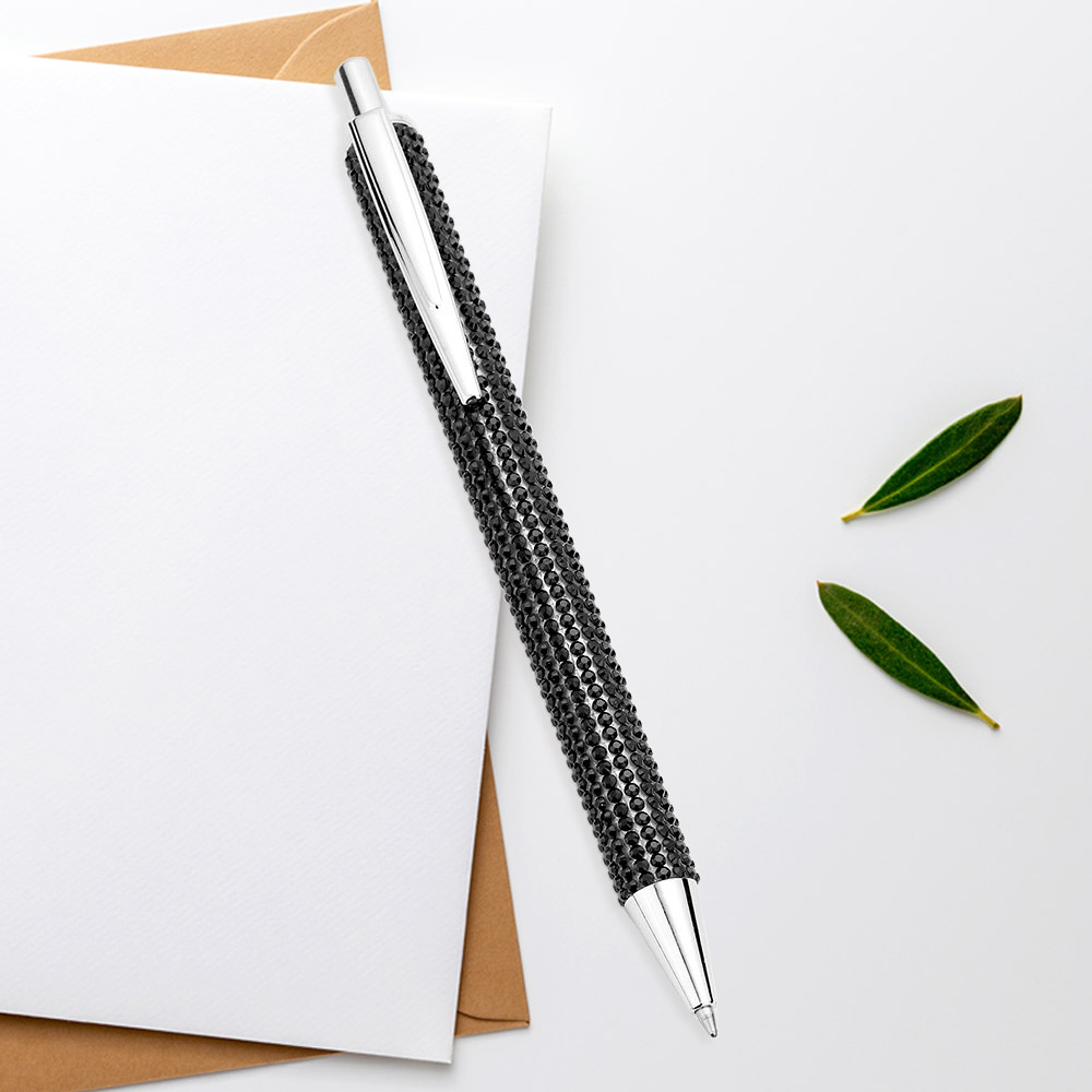 • Sparkling rhinestone ballpoint pen with a twist-action design and metallic accents. A fun, eye-catching addition to your desk, perfect for gifting or everyday writing.