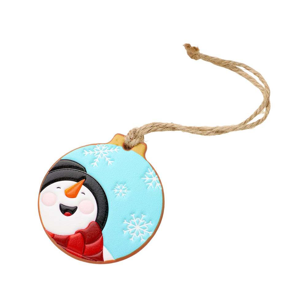 Faux Leather Embossed Snowman Round Christmas Tree Ornament