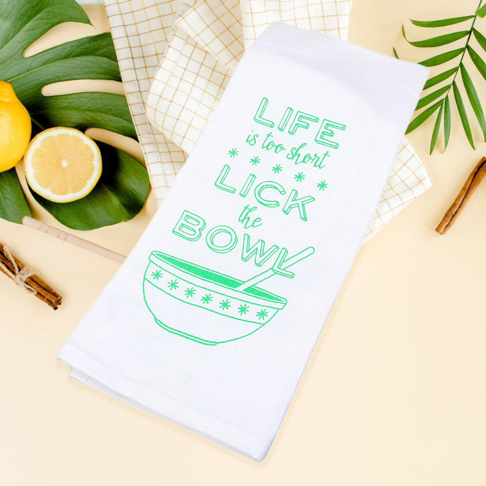 Life is too Short Lick The Bowl Message Printed Kitchen Towel