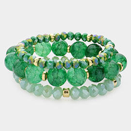 3PCS - Speckled Resin Pebble Metal Bar Beaded Stretch Multi Layered Bracelets