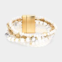 Oval Howlite Accented Metal Stretch Bracelet