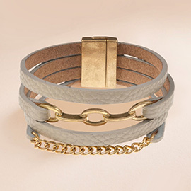 Marbled Faceted Ball Beaded Multi Layered Faux Leather Magnetic Necklace
