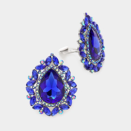 Teardrop Glass Stone Pointed Rhinestone Paved Evening Earrings