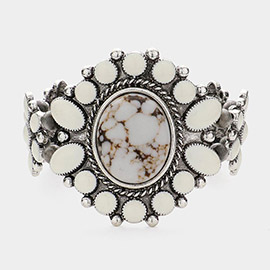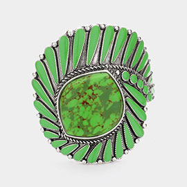 Boho Western Oval Turquoise Stone Accent Cuff Bracelet