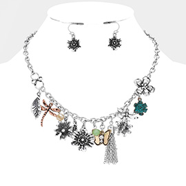 Flower and Leaf Metal Garden Bib Necklace
