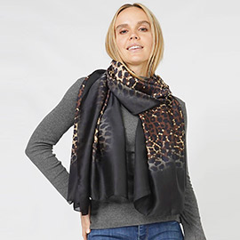 Leopard Pattern Printed Oblong Silky Satin Scarf Shawl