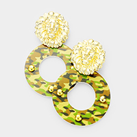 Metal Lion Accented Cutout Triangle Dangle Earrings