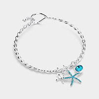Rhinestone Embellished Starfish Metal Heart Charm Station Toggle Bracelet