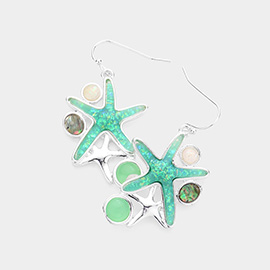 Metal Starfish Pointed Teardrop Stone Cluster Link Dropdown Earrings