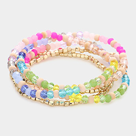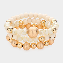 4PCS- Wooden Metal Ball Beaded Stretch Multi Layered Bracelets