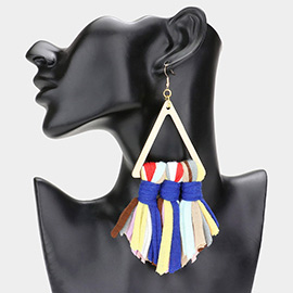 Wooden Charm Hanging Open Oval Dangle Earrings