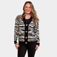 Zebra Pattern In Front Button Closure Pocket Cardigan