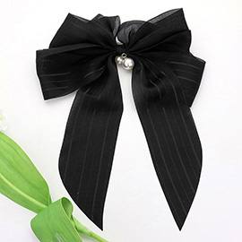 Oversized Pearl Dangle Pointed Chain Pattern Bow Barrette