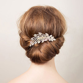 Rhinestone Paved Flower Leaf Pointed Hair Comb
