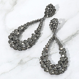 Bold Rhinestone Studded Open Heart Drop Dangle Statement Evening Earrings