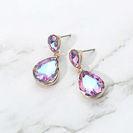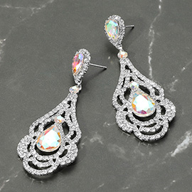 Ornate Top Faceted Teardrop Stone Dangle Clip On Evening Earrings