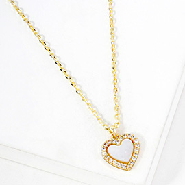 14K Gold Plated Two Tone CZ Stone Paved Mother of Pearl Heart Pendant Necklace