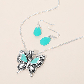 Oval Stone Pointed Antique Metal Teardrop Pendant Necklace